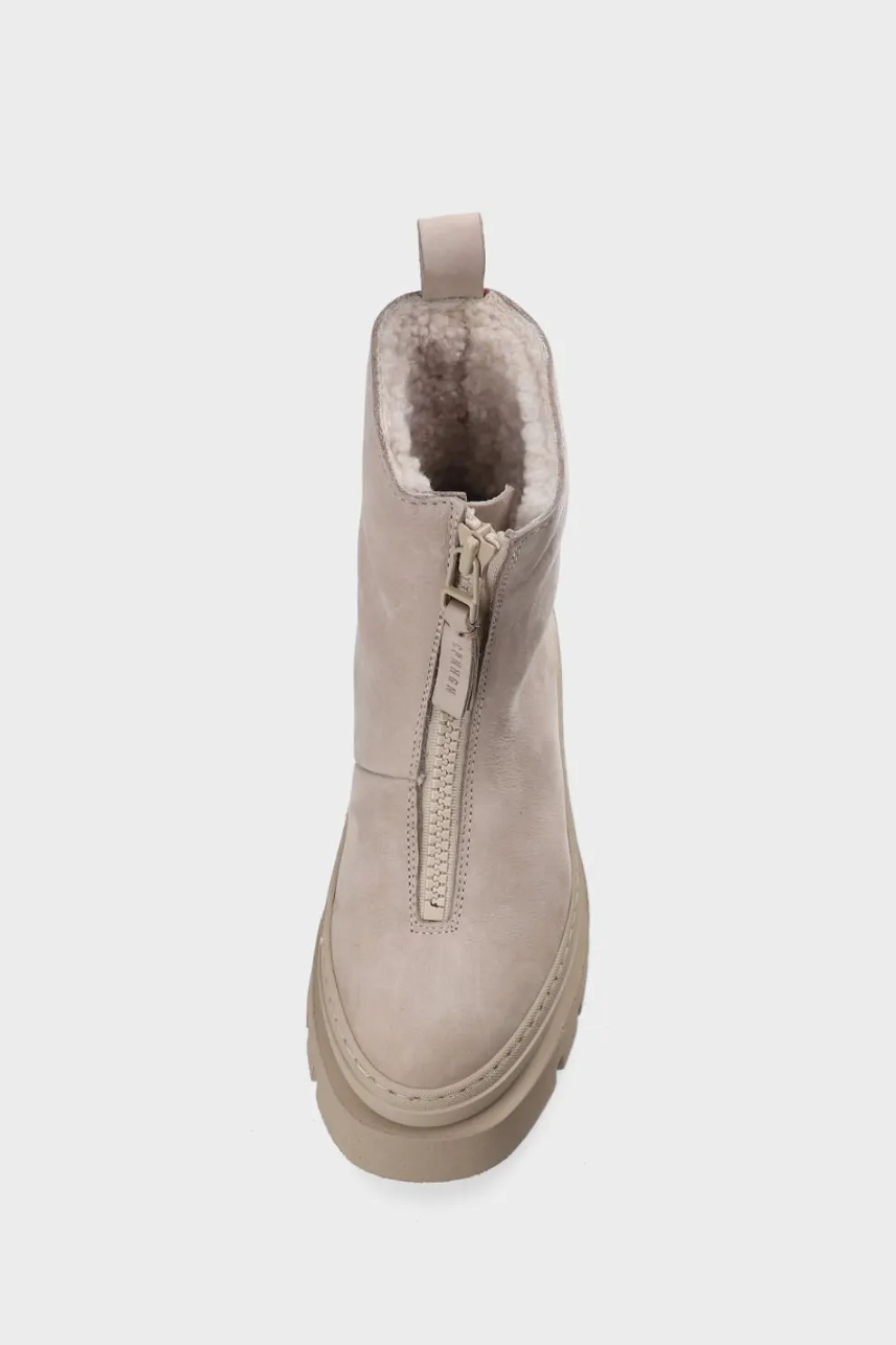 In Greige. Enkellaarzen Met Ritssluiting Van Nubuckleer Met Vegan Teddyvoering. Enkelhoog Silhouet. Ronde Dop. Ritssluiting Aan De Voorkant. Trek De Lus Aan De Schacht. Subtiele Branding Aan De Buitenkant. Een Warme En Relaxte Stijl Voor Koele Herfstdagen.Onze Schoenen Zijn Ontworpen In Kopenhagen En Gemaakt In Europa. Het Leer Komt Uit Geselecteerde, Door Een Familie Gerunde Fabrieken In Italië.